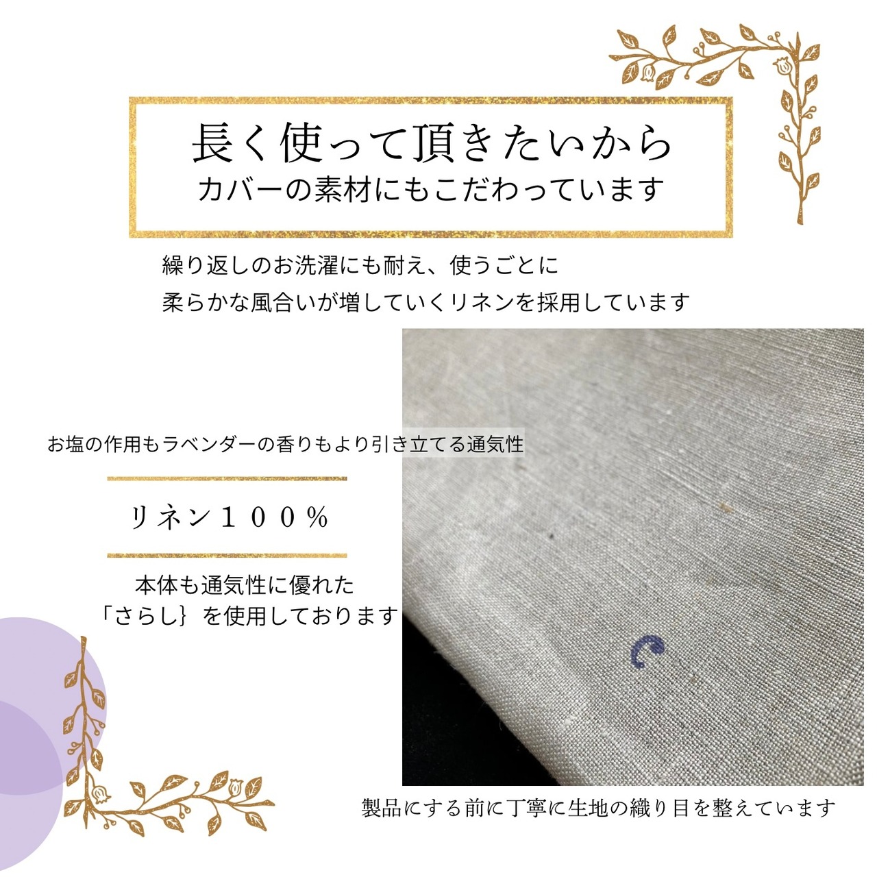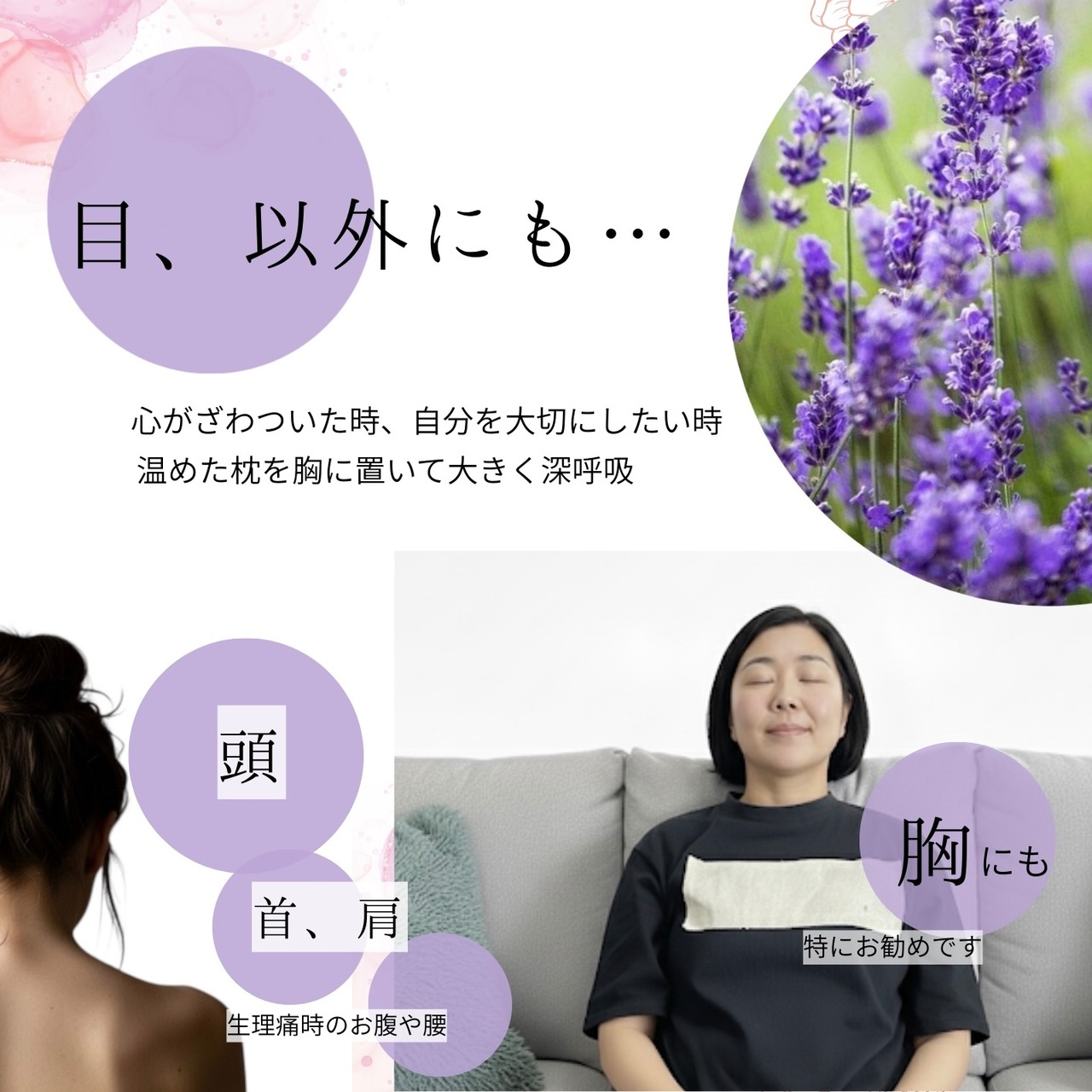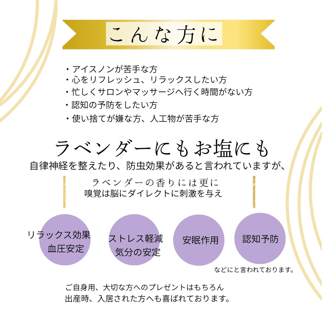 目や心が疲れた時すぐに使える無農薬栽培のラベンダーとお塩のアイピローは、 リフレッシュやお昼寝タイムにもお勧めです。