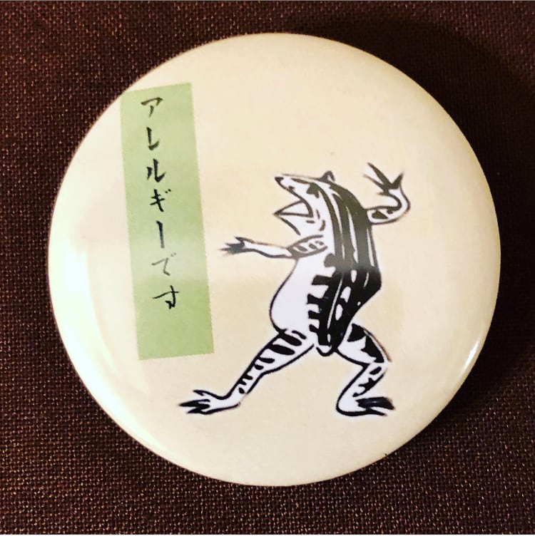 アレルギーバッチ 鳥獣戯画 カエル 缶バッジ 周知喚起