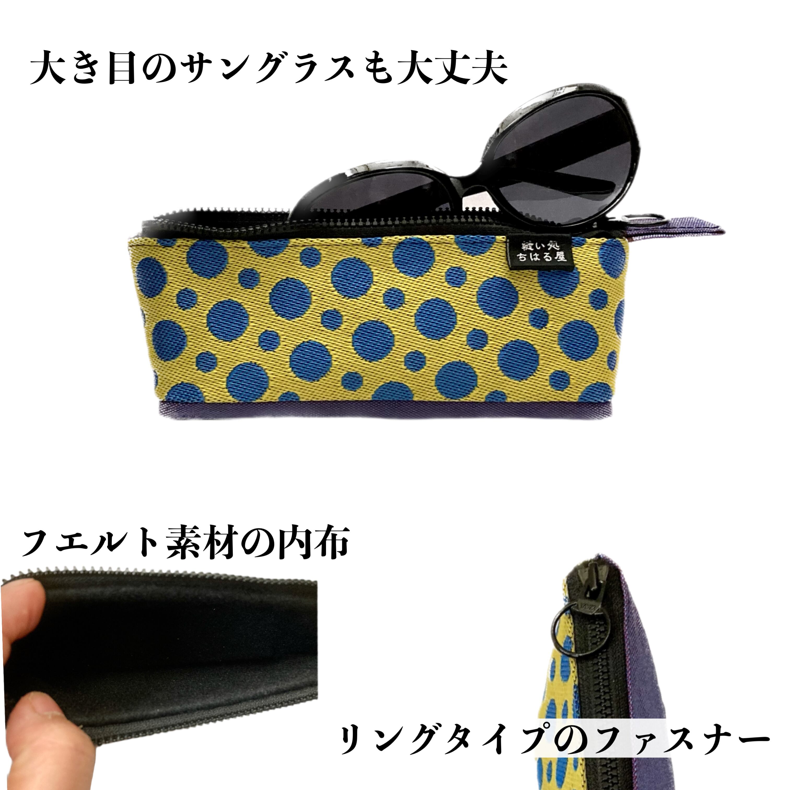 サイズにこだわり、大き目のサングラスが入りますが、幅が4㎝とコンパクトなのでバッグにも収納しやすく、デスクにも置きやすいアイテムです。