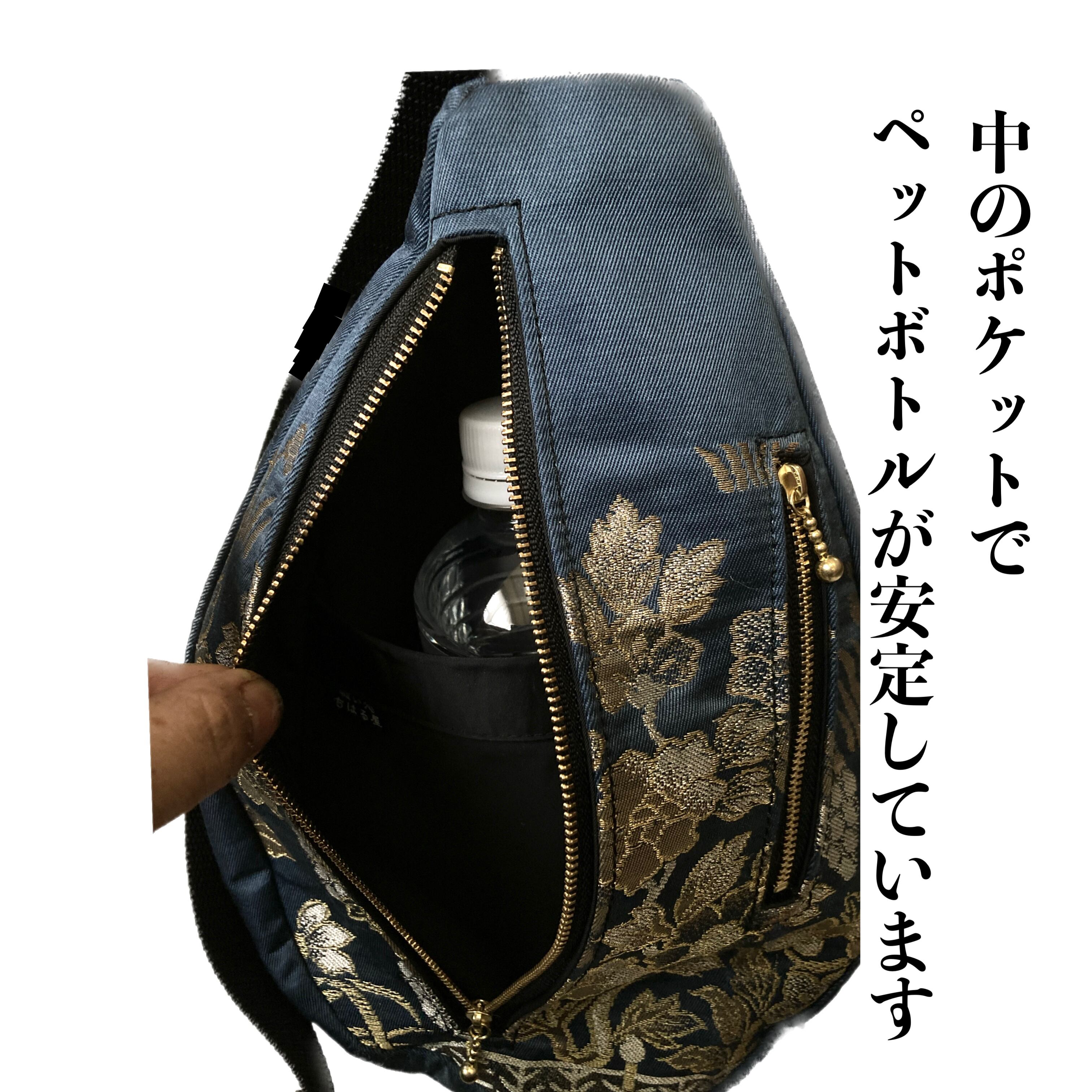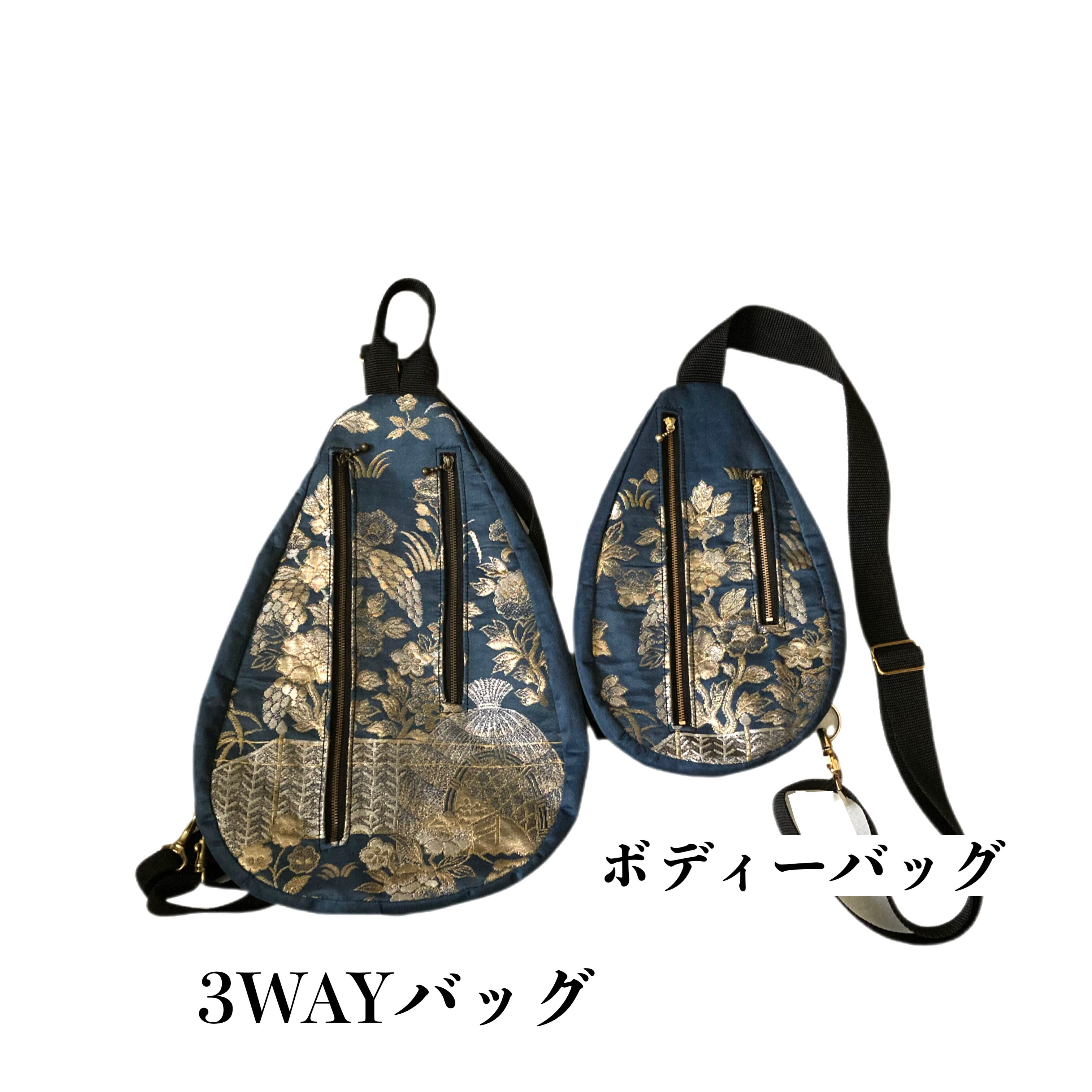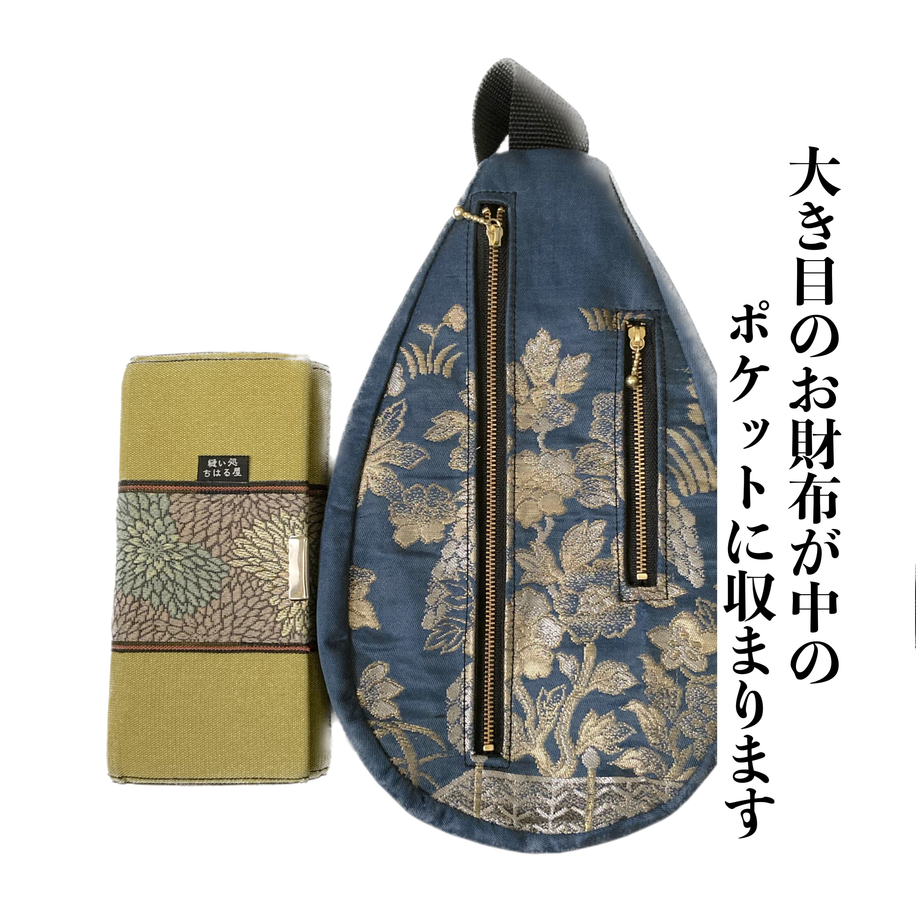 厳選した帯地を撥水加工してお作りしたボディーバッグ。