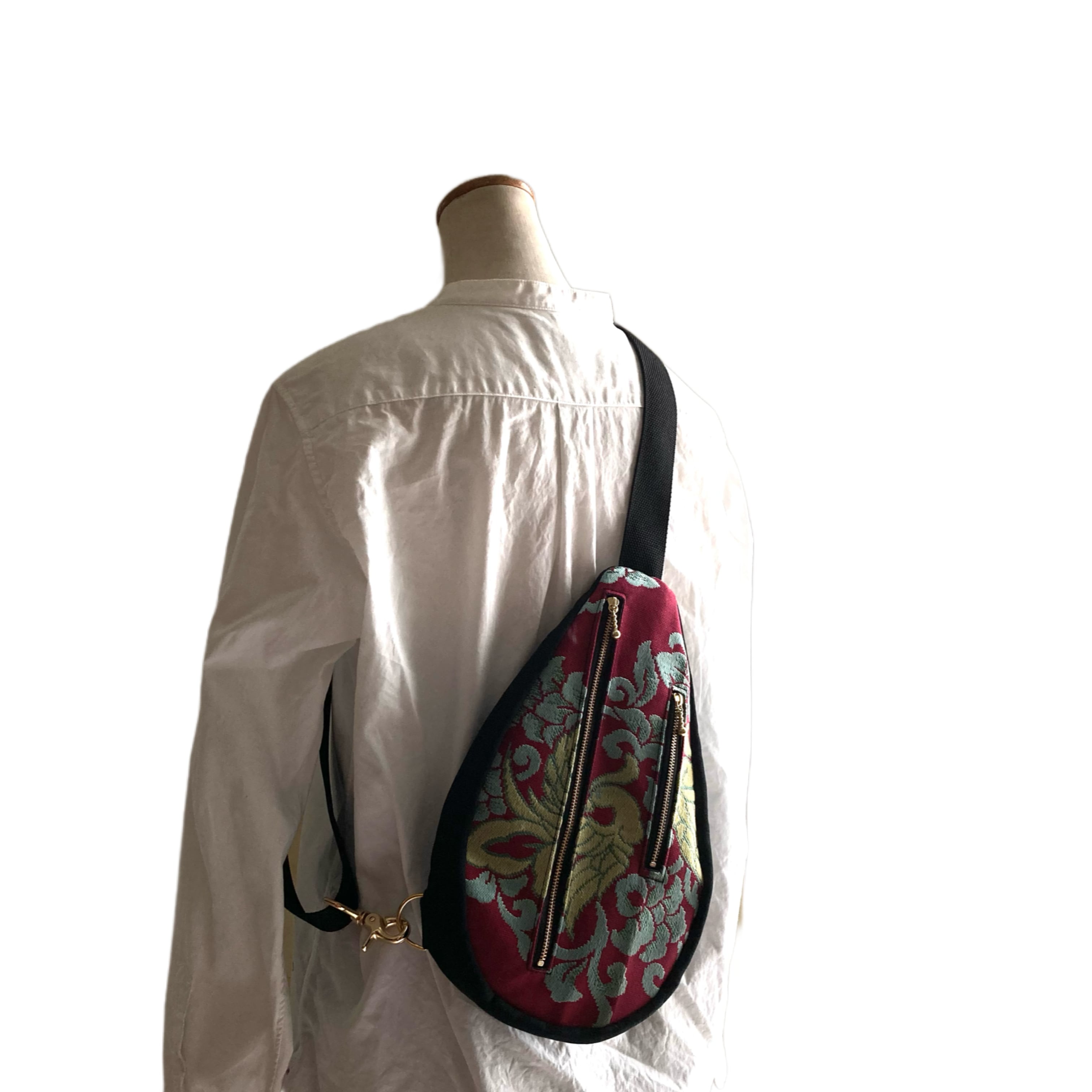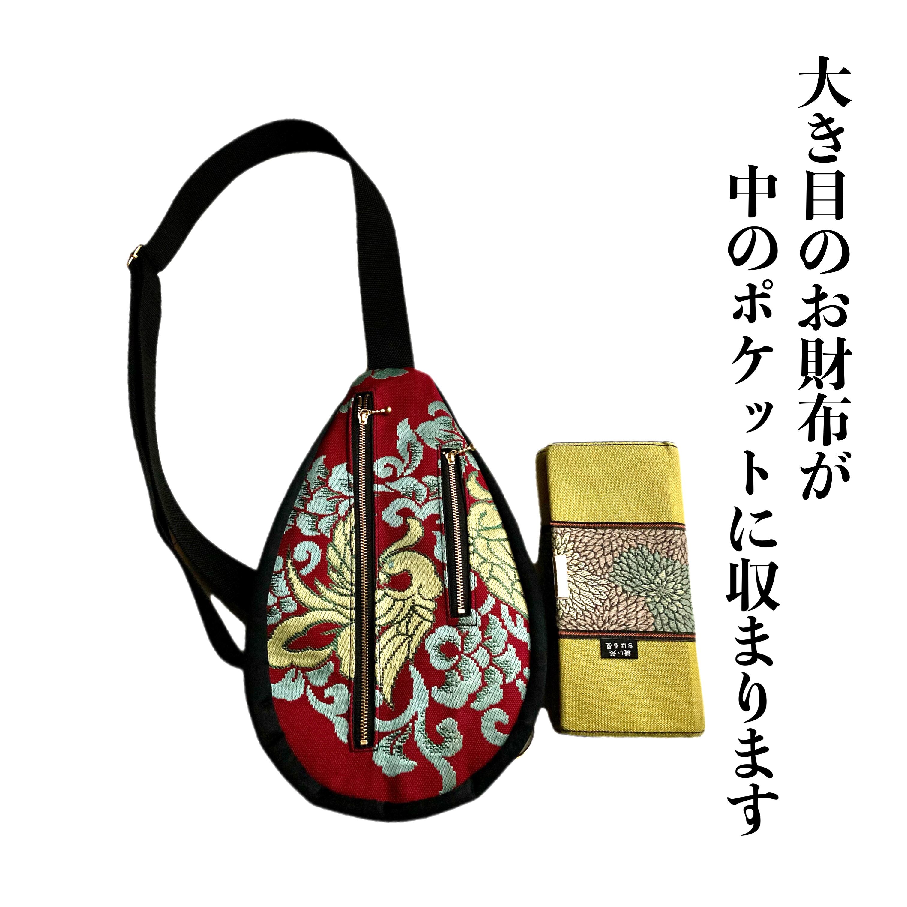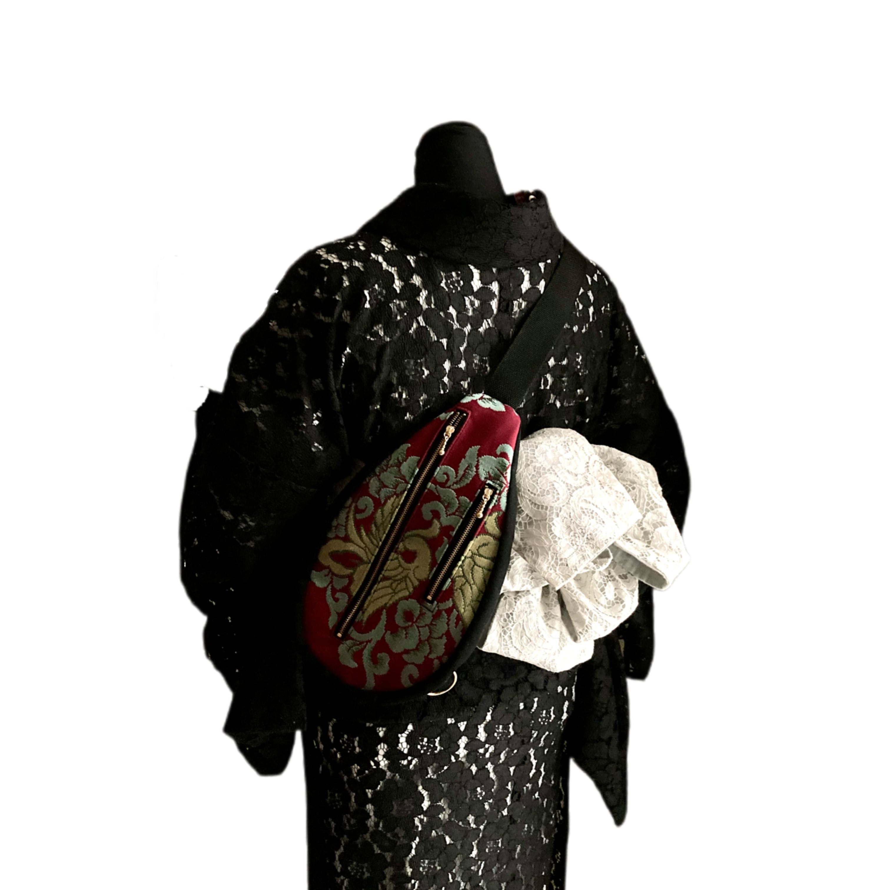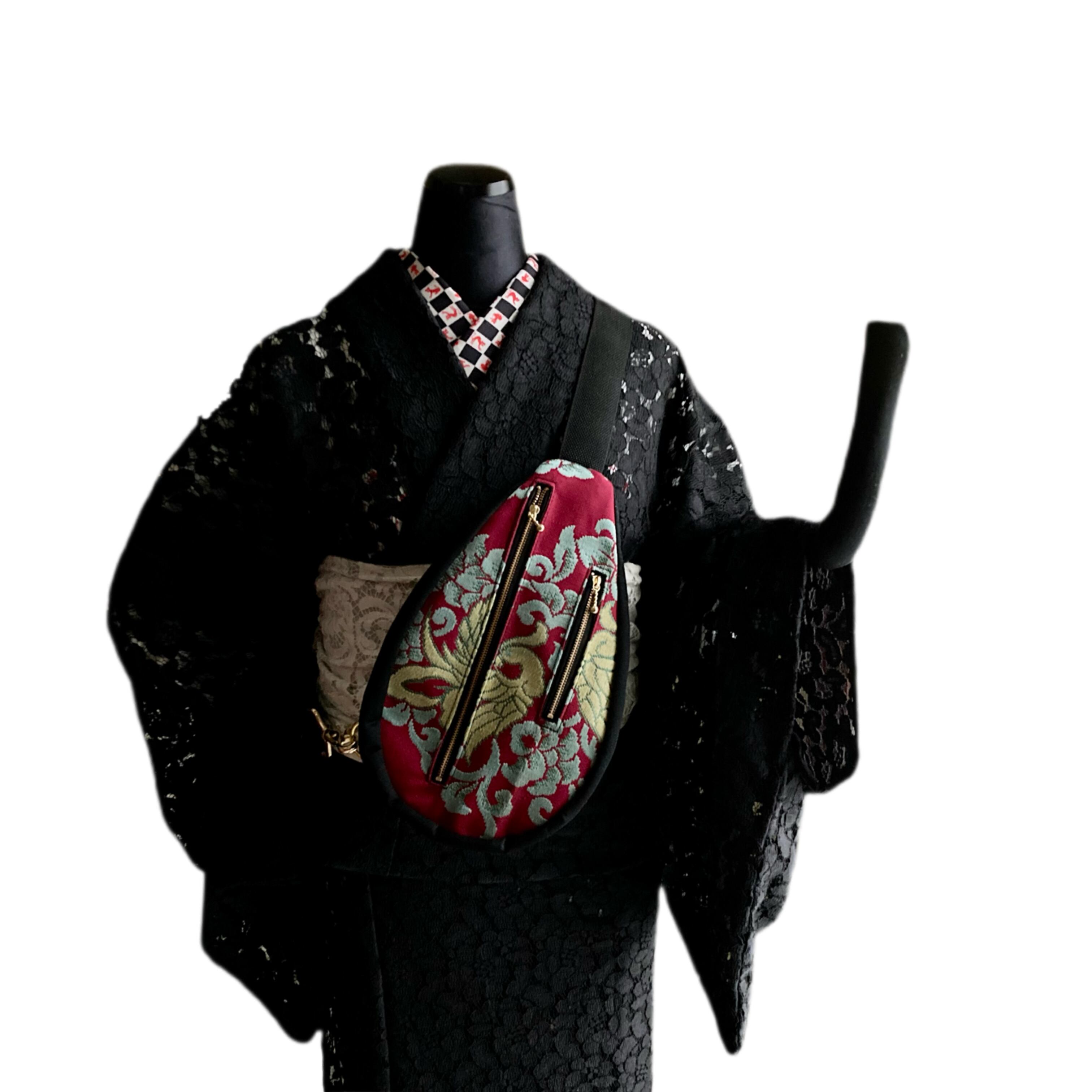 厳選した帯地を撥水加工してお作りしたボディーバッグ。