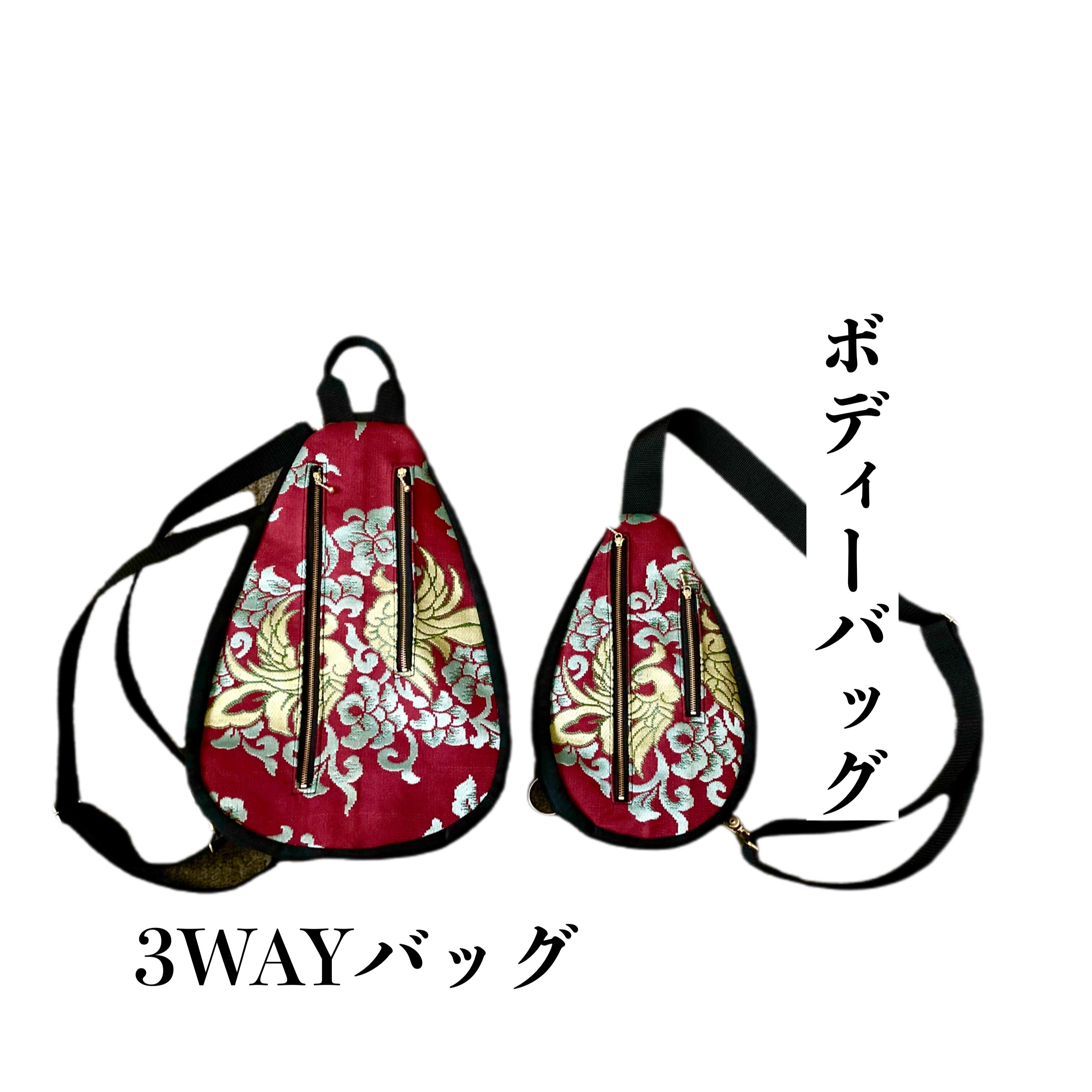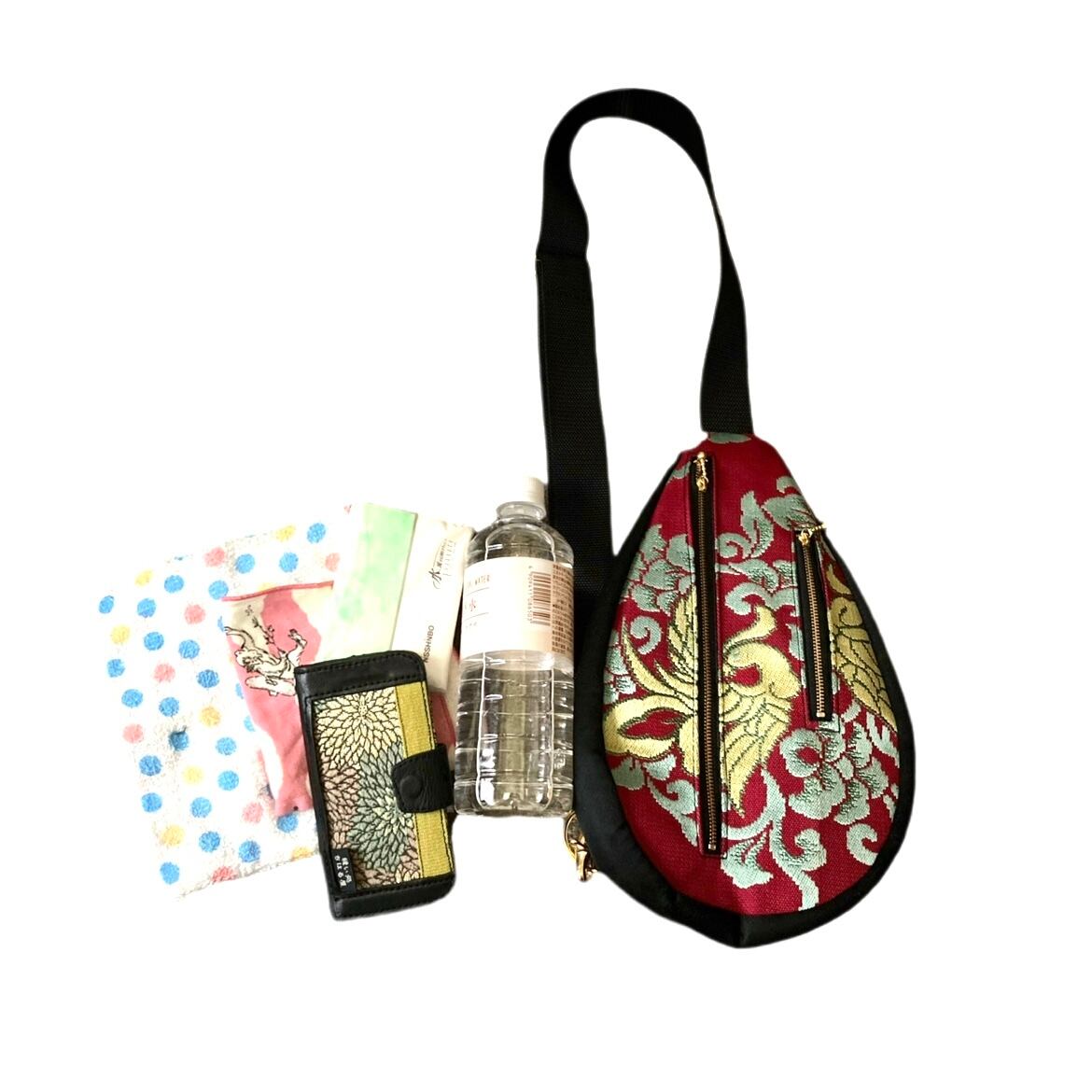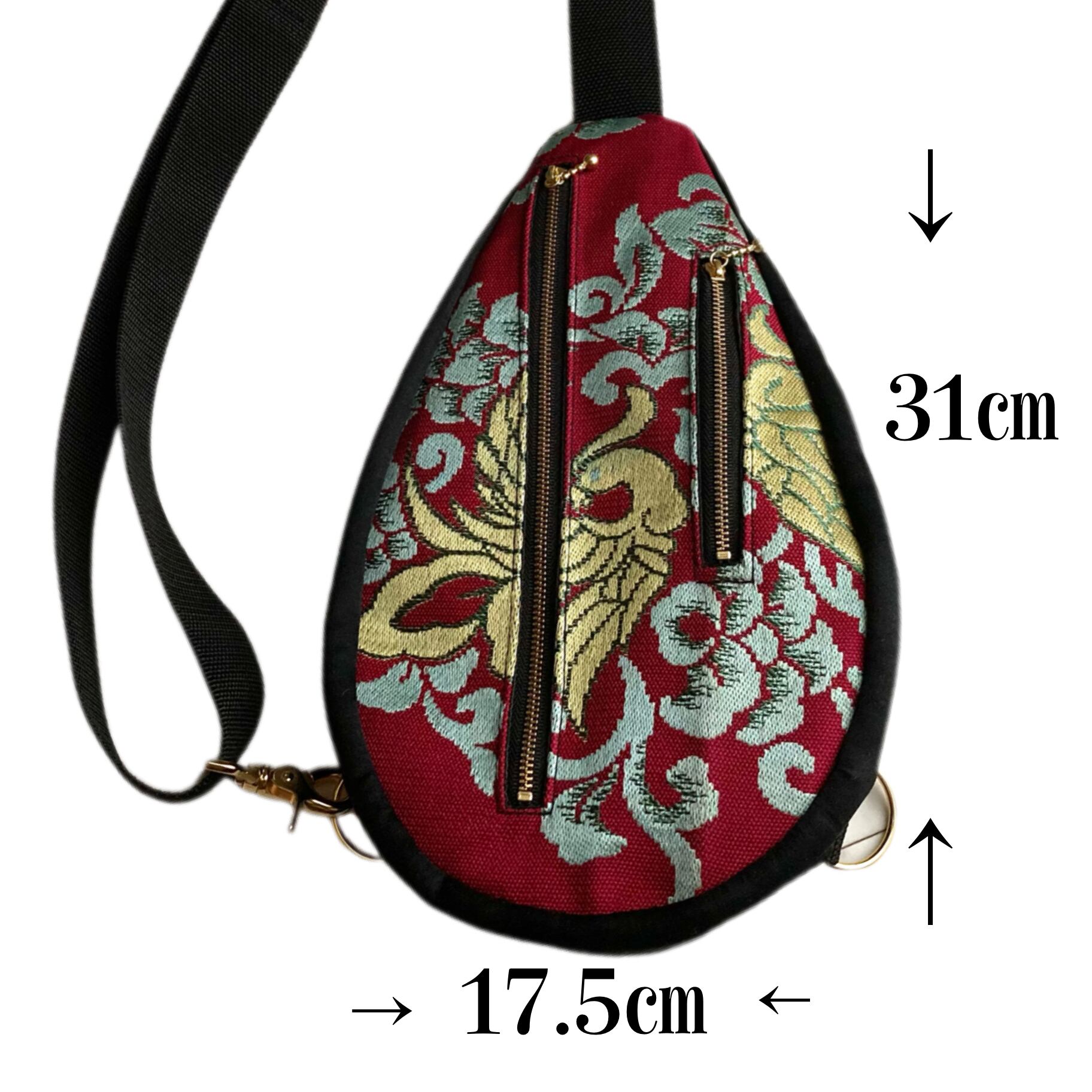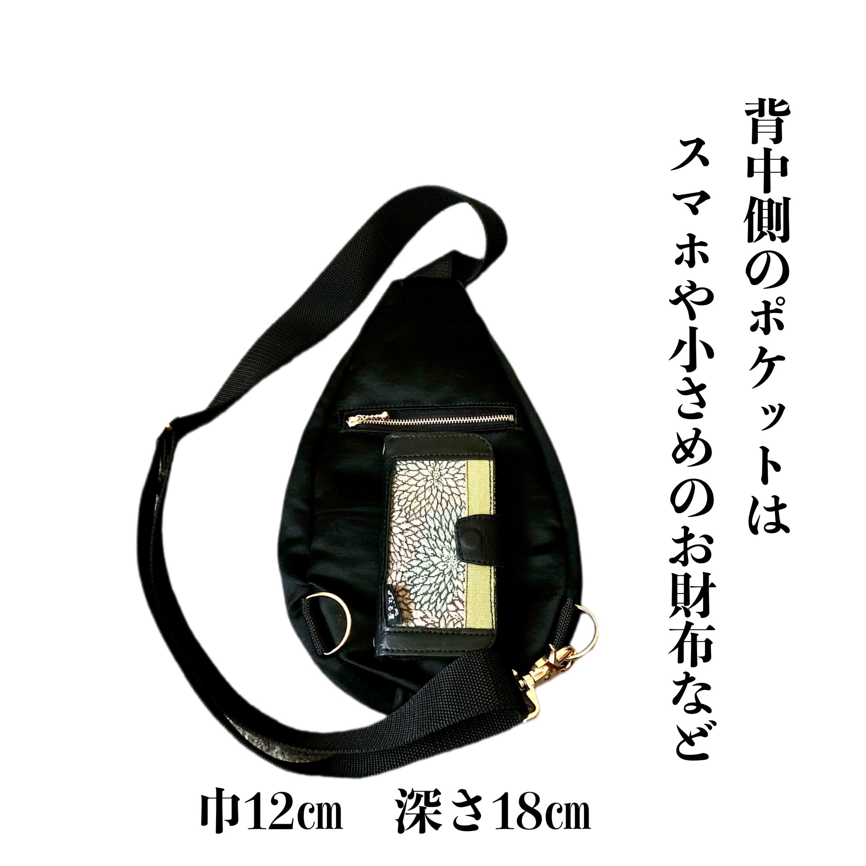 厳選した帯地を撥水加工してお作りしたボディーバッグ。