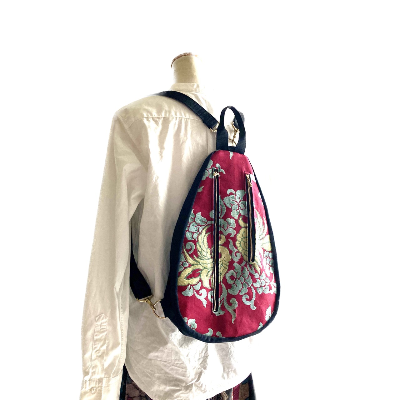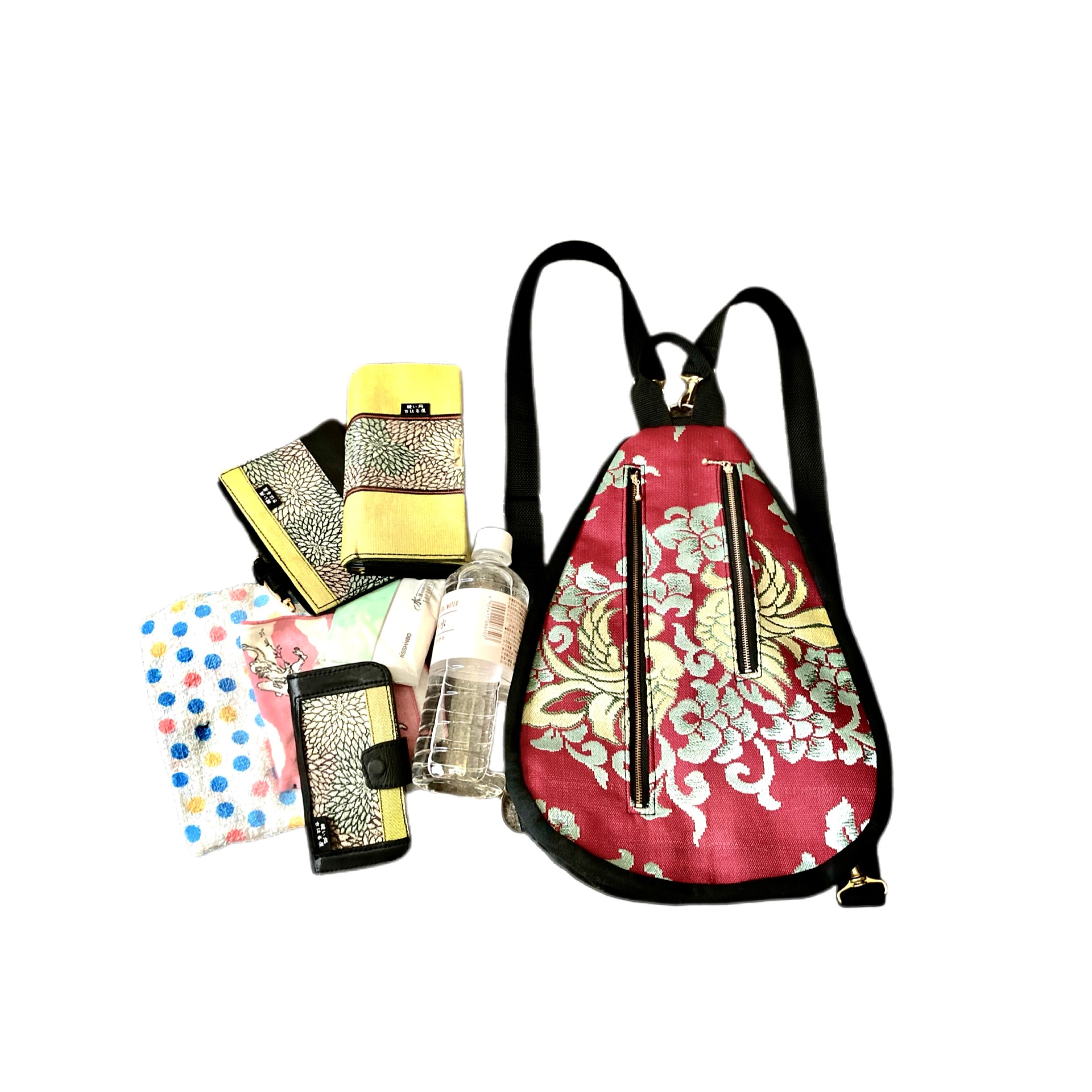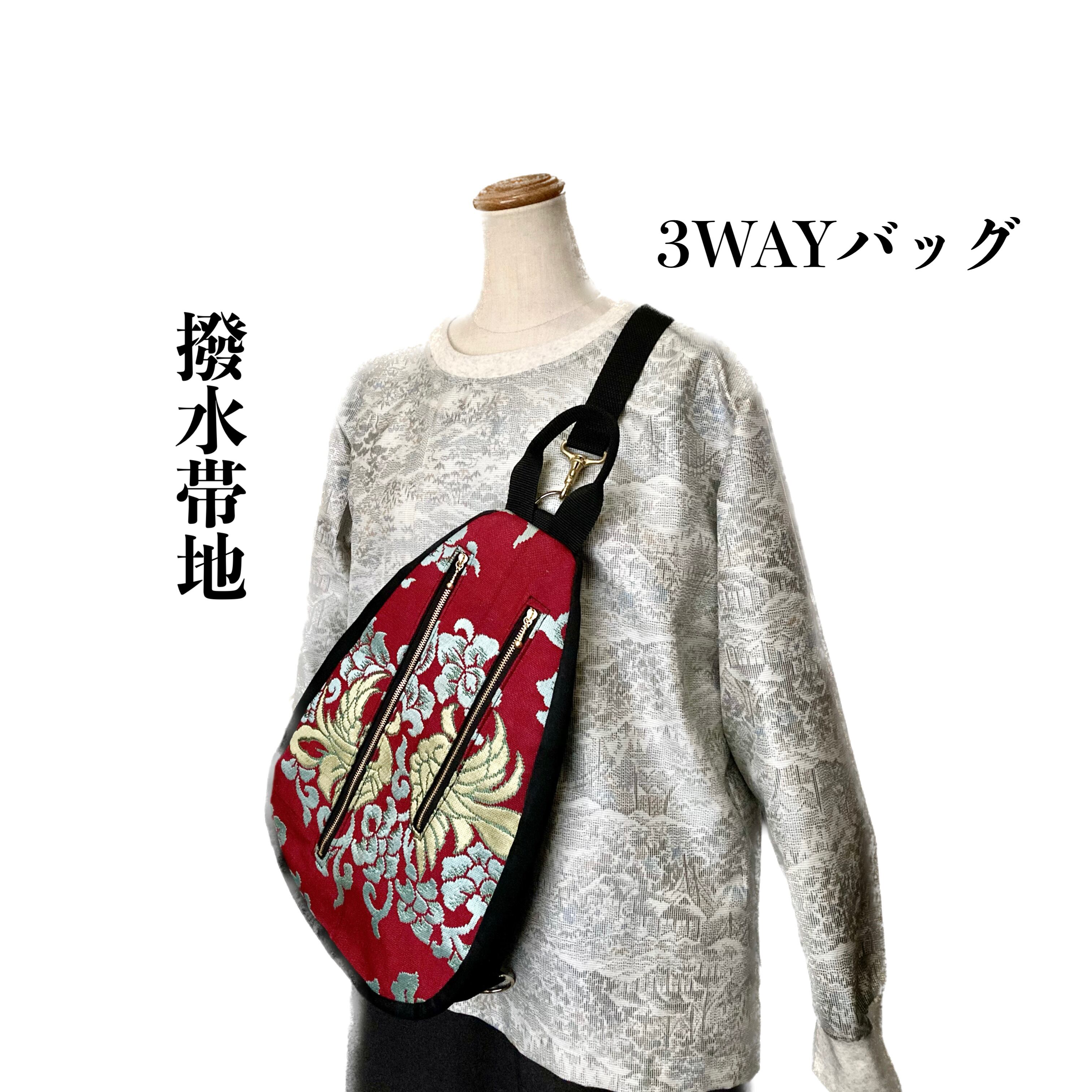 厳選した帯地を撥水加工してお作りした3WAYバッグです。